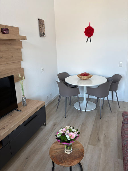 Das Apartment (44m²) bietet ein Wohn- und Schlafzimmer mit separater, kleiner Küche, Flur, Badezimmer und Balkon. Es eignet sich hervorragend für 2 Personen.